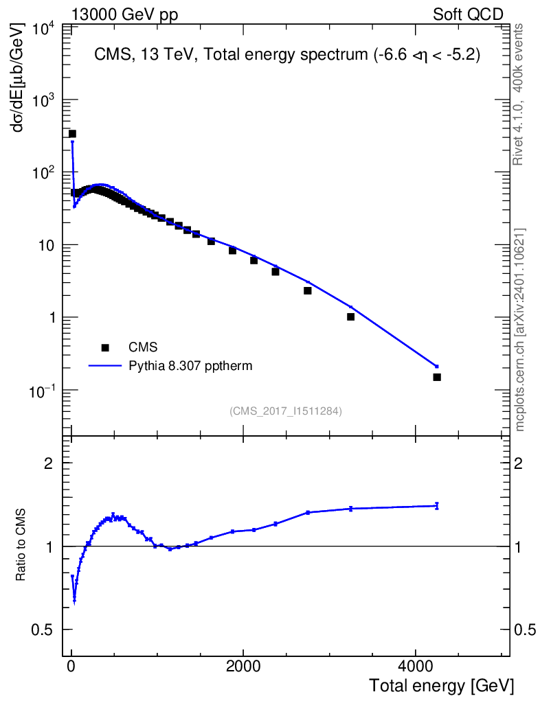 Lines: data, pythia8 8.307 pptherm |