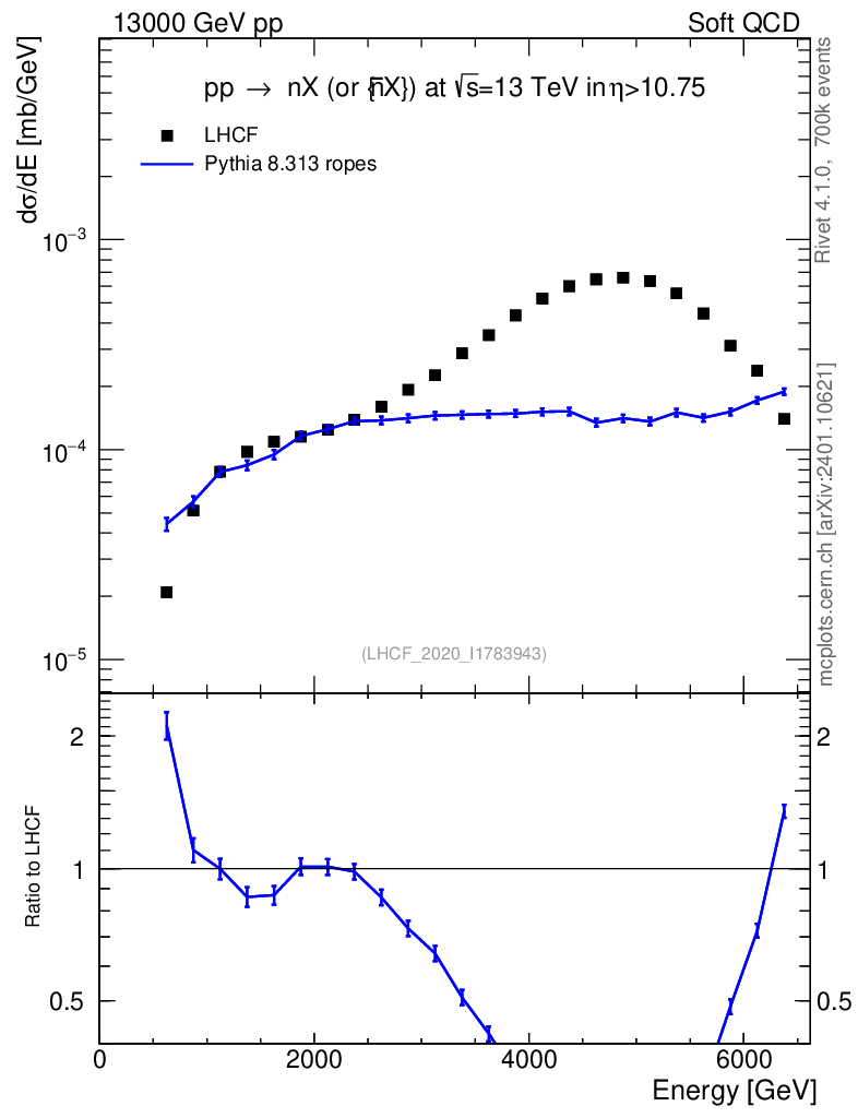 Lines: data, pythia8 8.313 ropes |