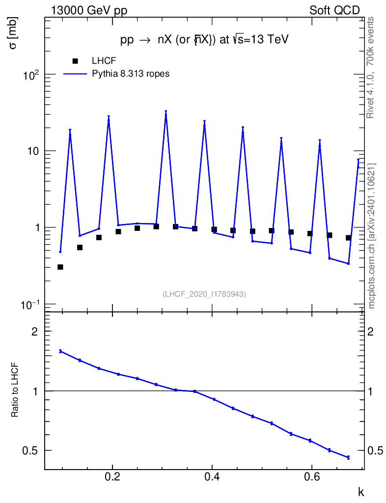 Lines: data, pythia8 8.313 ropes |