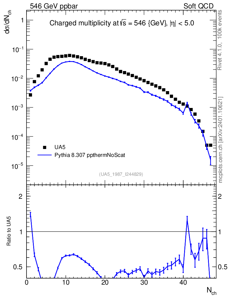 Lines: data, pythia8 8.307 ppthermNoScat |