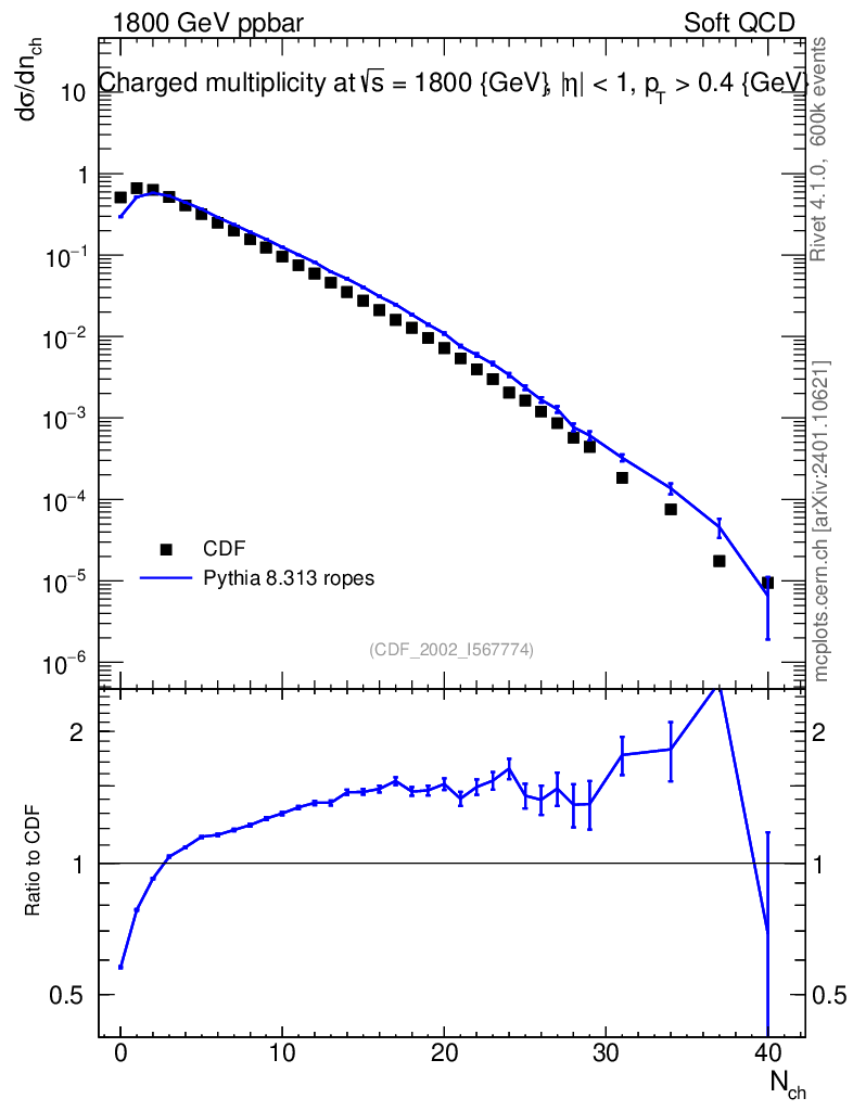 Lines: data, pythia8 8.313 ropes |
