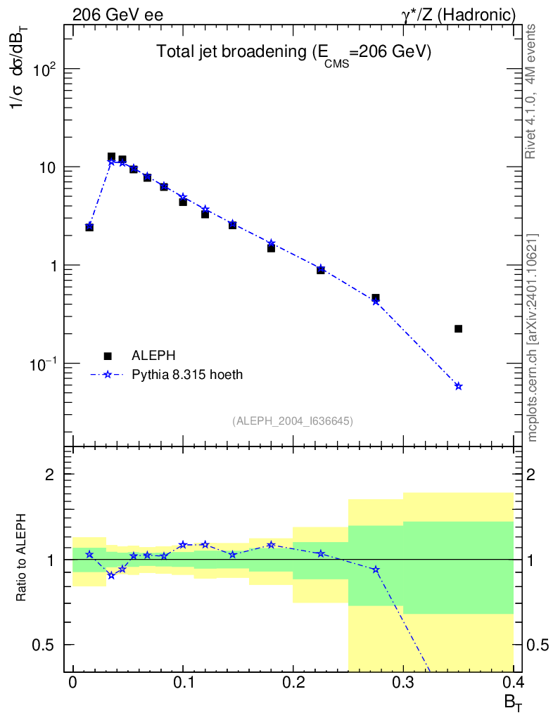 Lines: data, pythia8 8.315 hoeth |