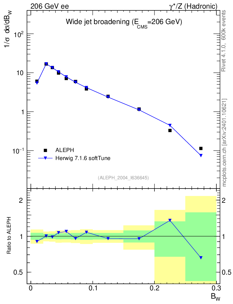 Lines: data, herwig7 7.1.6 softTune |