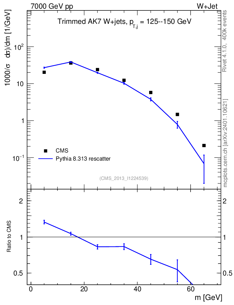 Lines: data, pythia8 8.313 rescatter |