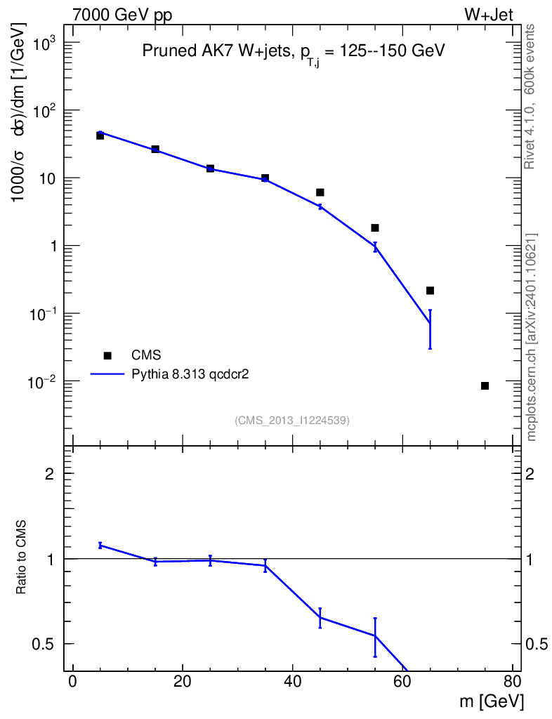 Lines: data, pythia8 8.313 qcdcr2 |
