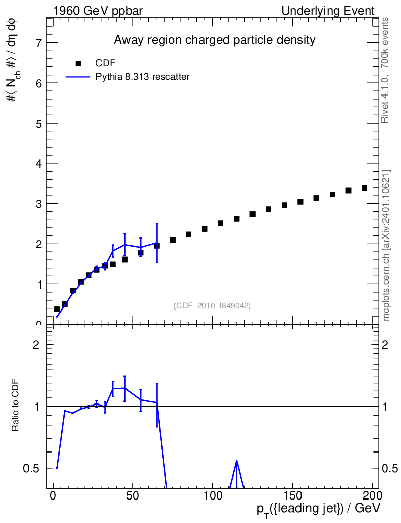 Lines: data, pythia8 8.313 rescatter |