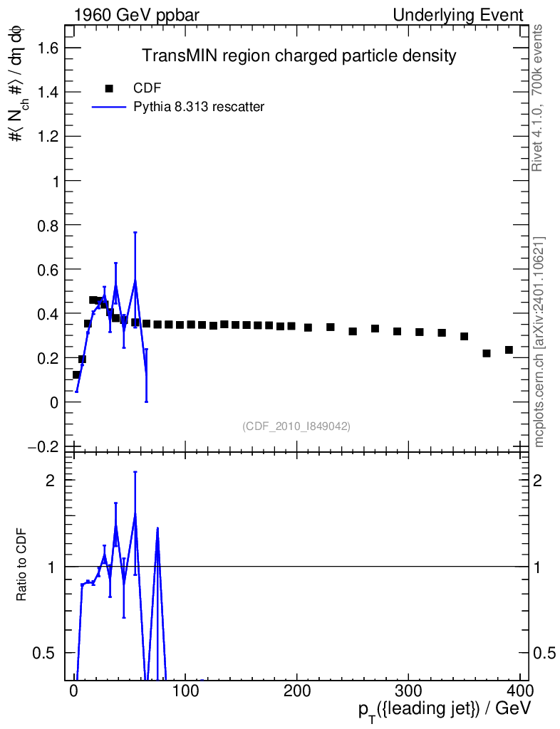 Lines: data, pythia8 8.313 rescatter |