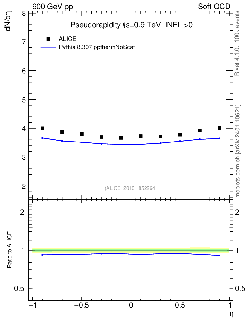 Lines: data, pythia8 8.307 ppthermNoScat |