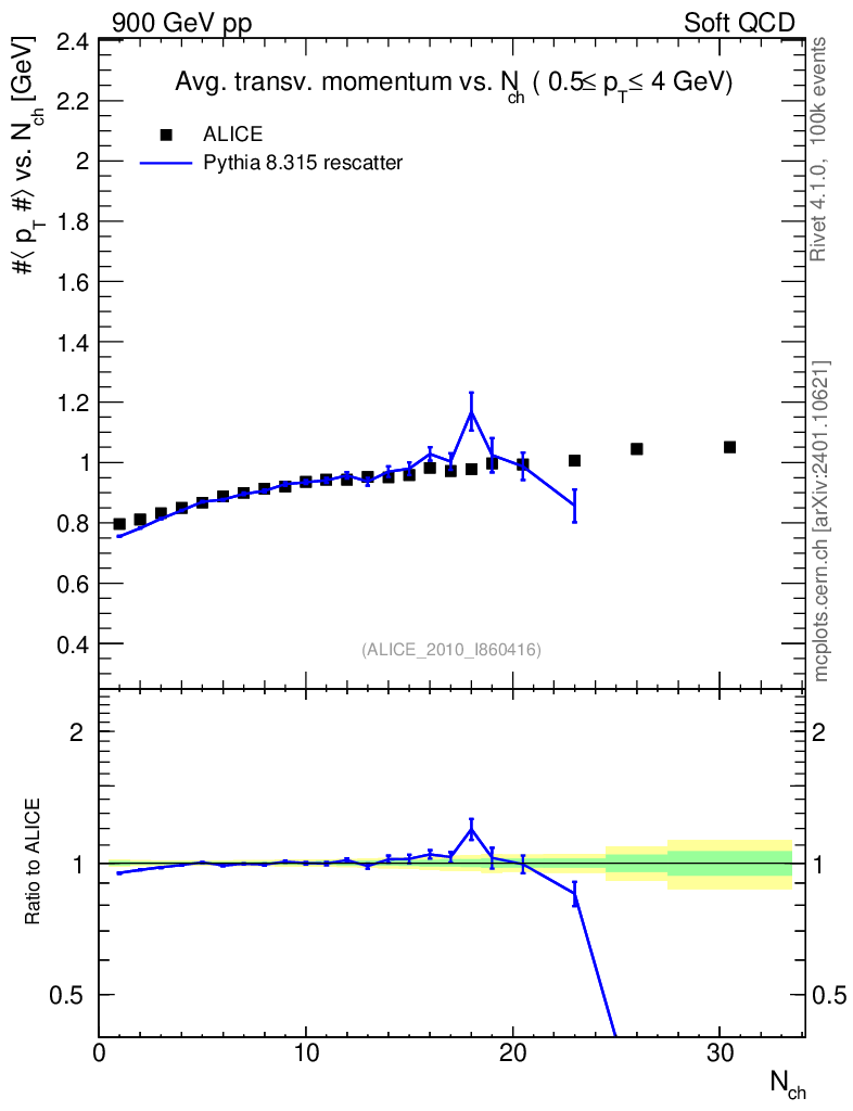 Lines: data, pythia8 8.315 rescatter |