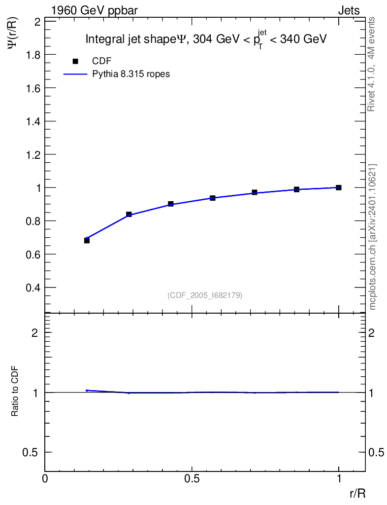 Lines: data, pythia8 8.315 ropes |