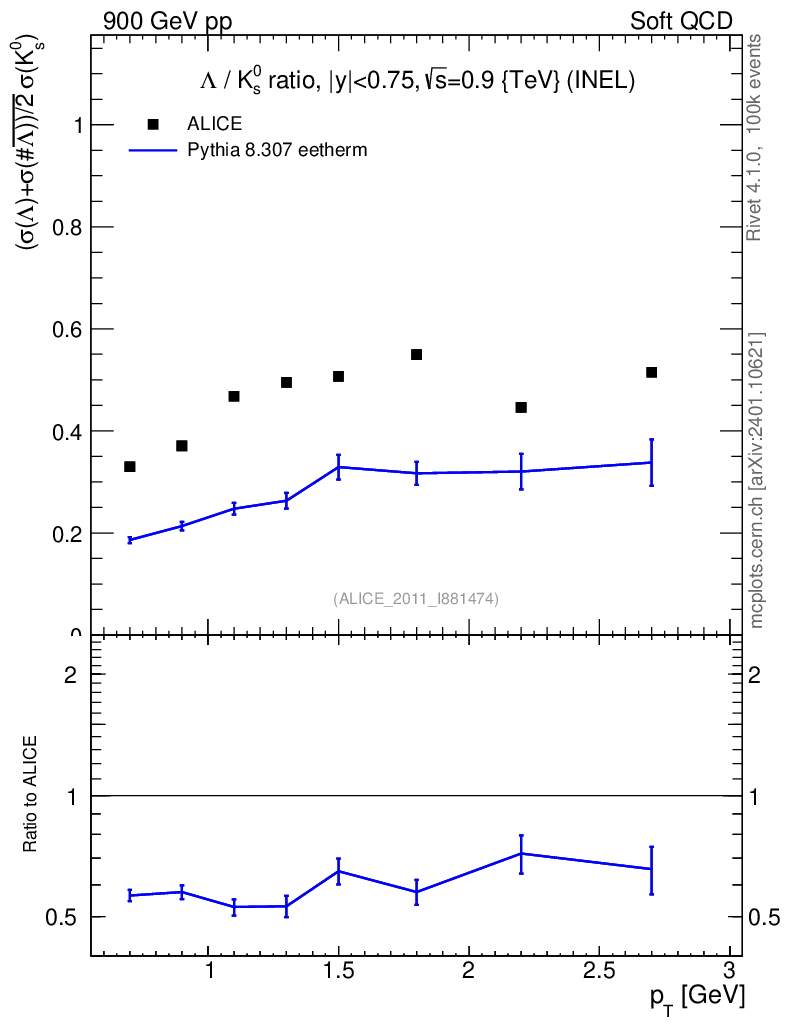 Observable: Λ/K0S vs pT