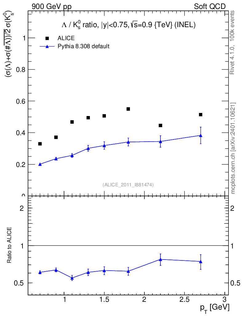 Observable: Λ/K0S vs pT