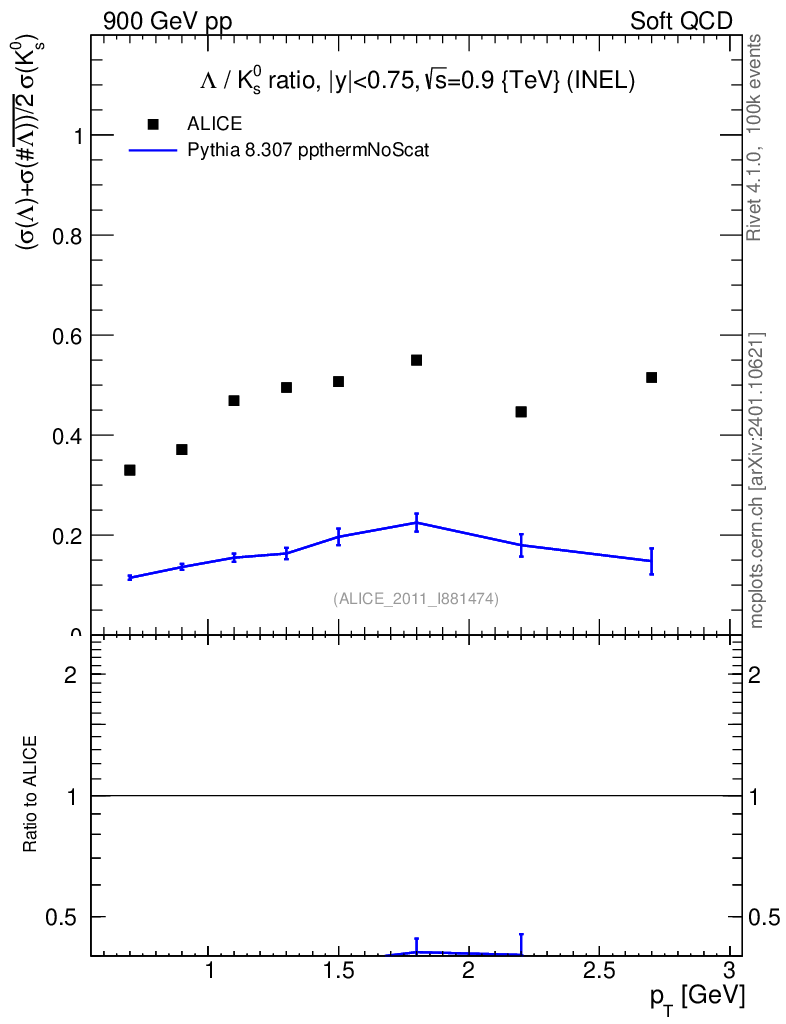 Lines: data, pythia8 8.307 ppthermNoScat |