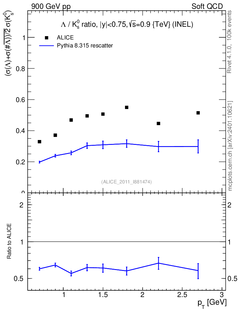 Observable: Λ/K0S vs pT