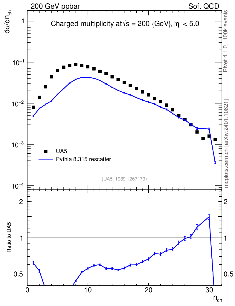 Lines: data, pythia8 8.315 rescatter |