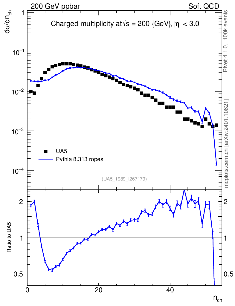 Lines: data, pythia8 8.313 ropes |