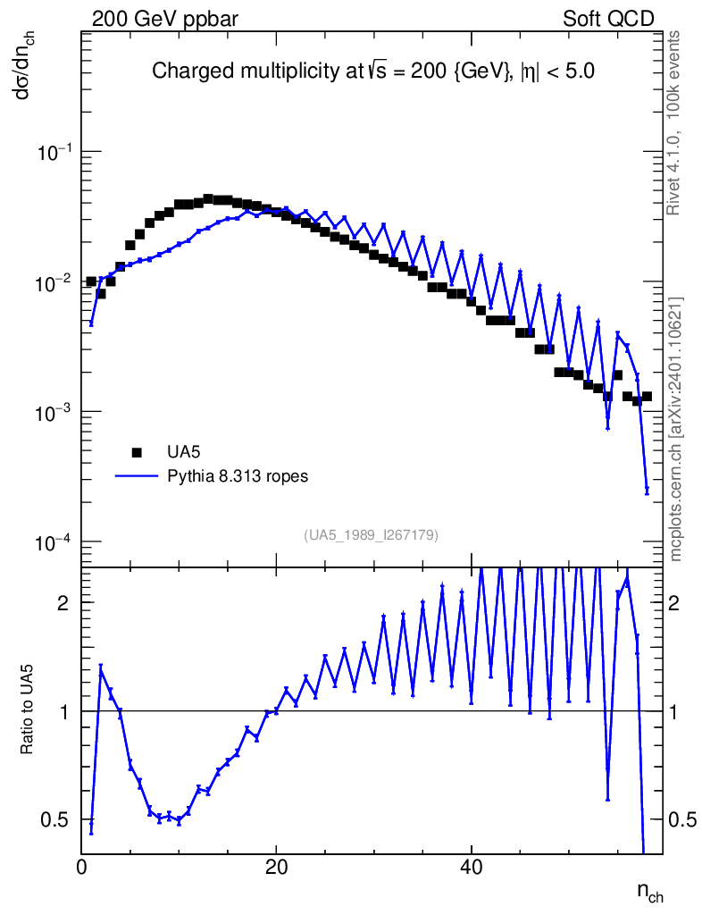Lines: data, pythia8 8.313 ropes |