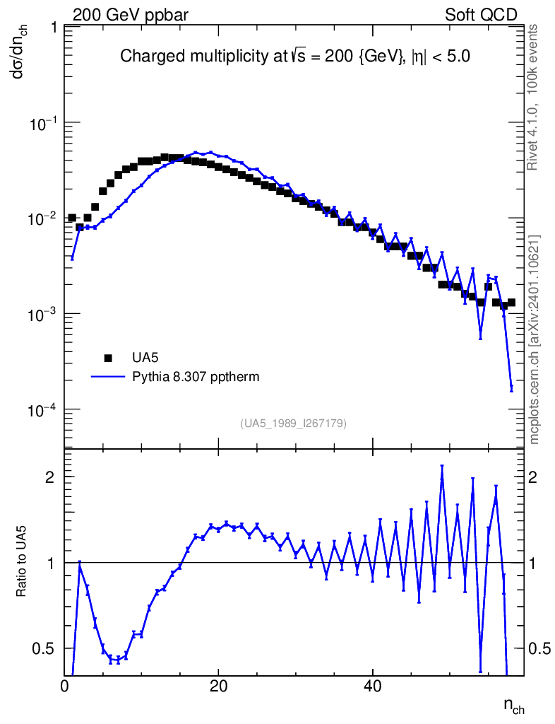 Lines: data, pythia8 8.307 pptherm |