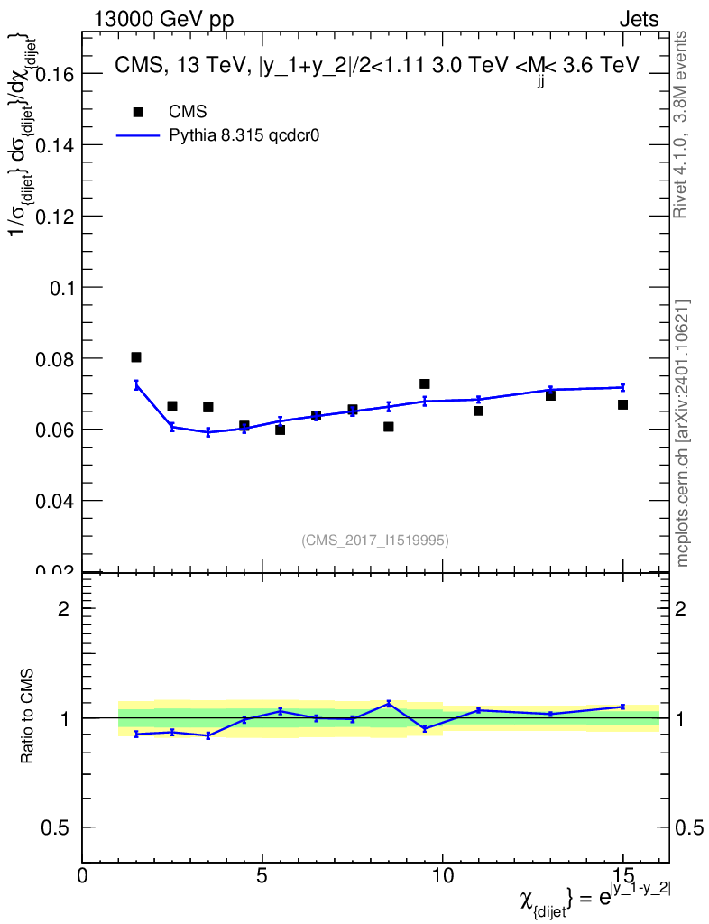 Lines: data, pythia8 8.315 qcdcr0 |