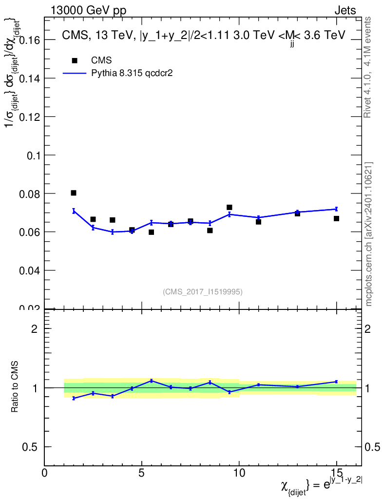 Lines: data, pythia8 8.315 qcdcr2 |