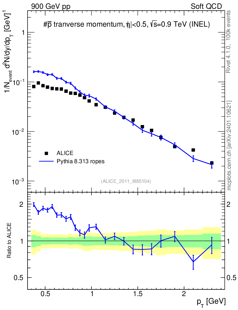 Lines: data, pythia8 8.313 ropes |