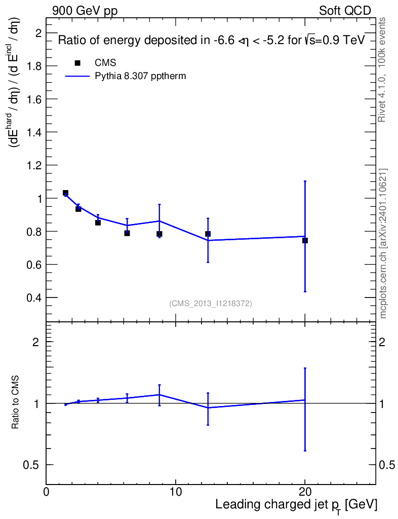 Lines: data, pythia8 8.307 pptherm |