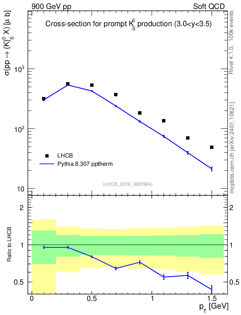 Lines: data, pythia8 8.307 pptherm |