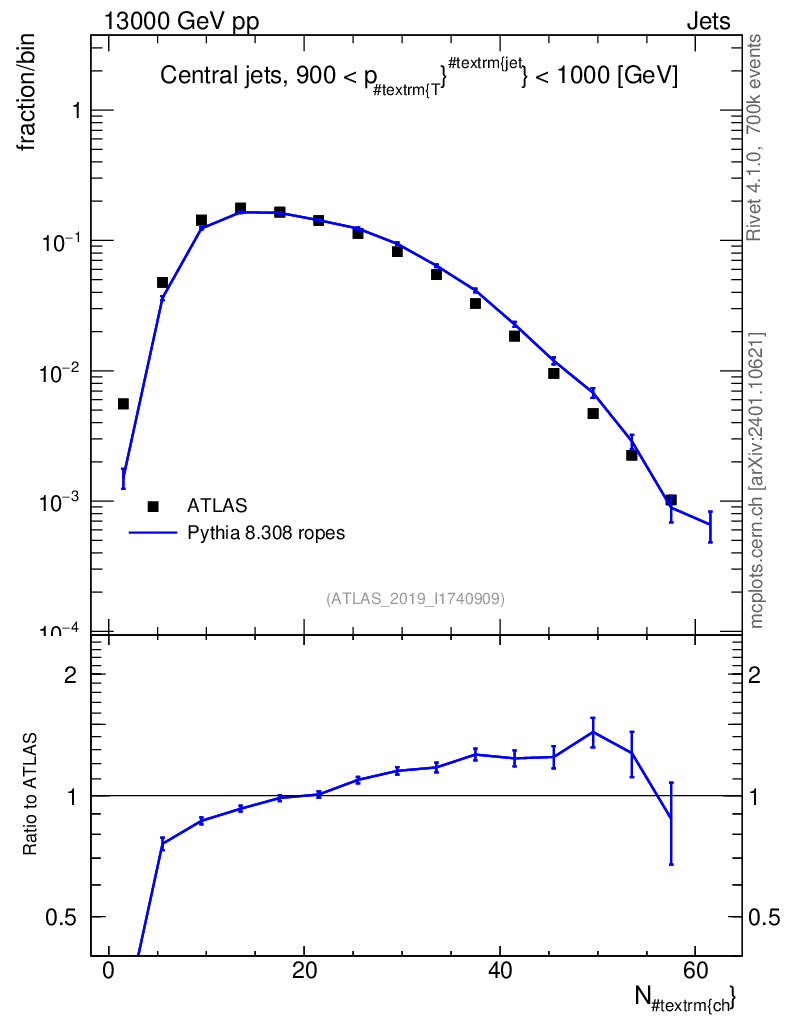 Lines: data, pythia8 8.308 ropes |