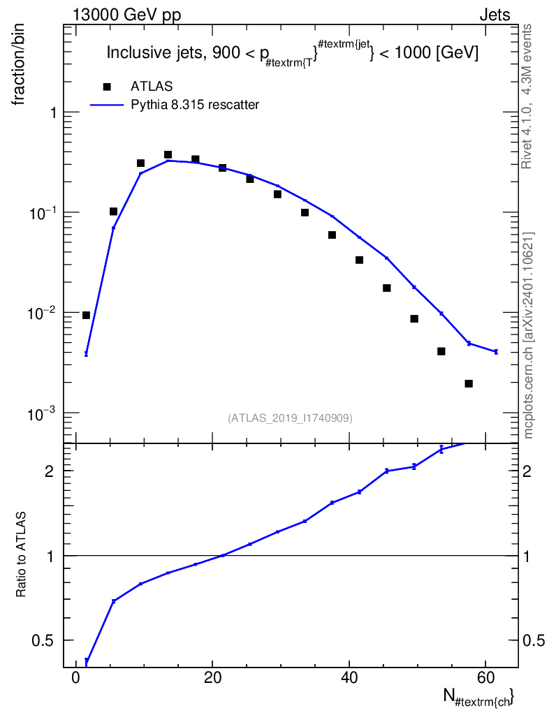 Lines: data, pythia8 8.315 rescatter |