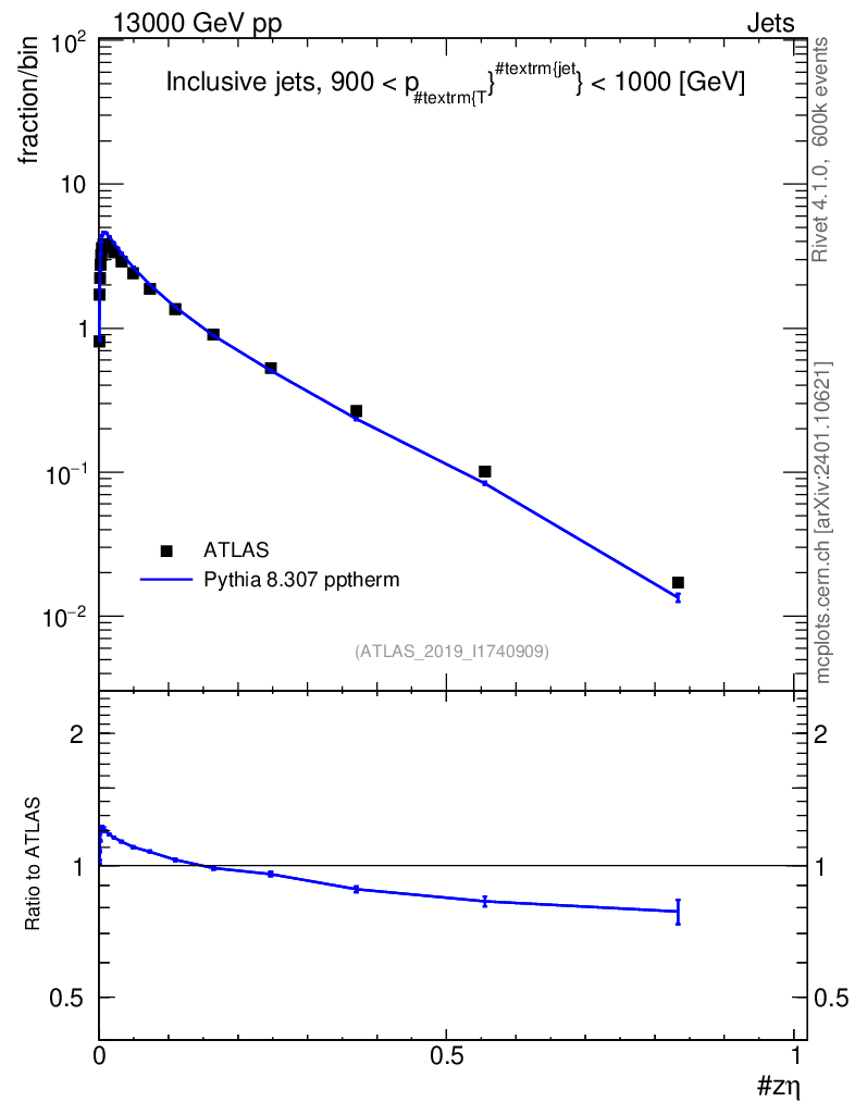 Lines: data, pythia8 8.307 pptherm |