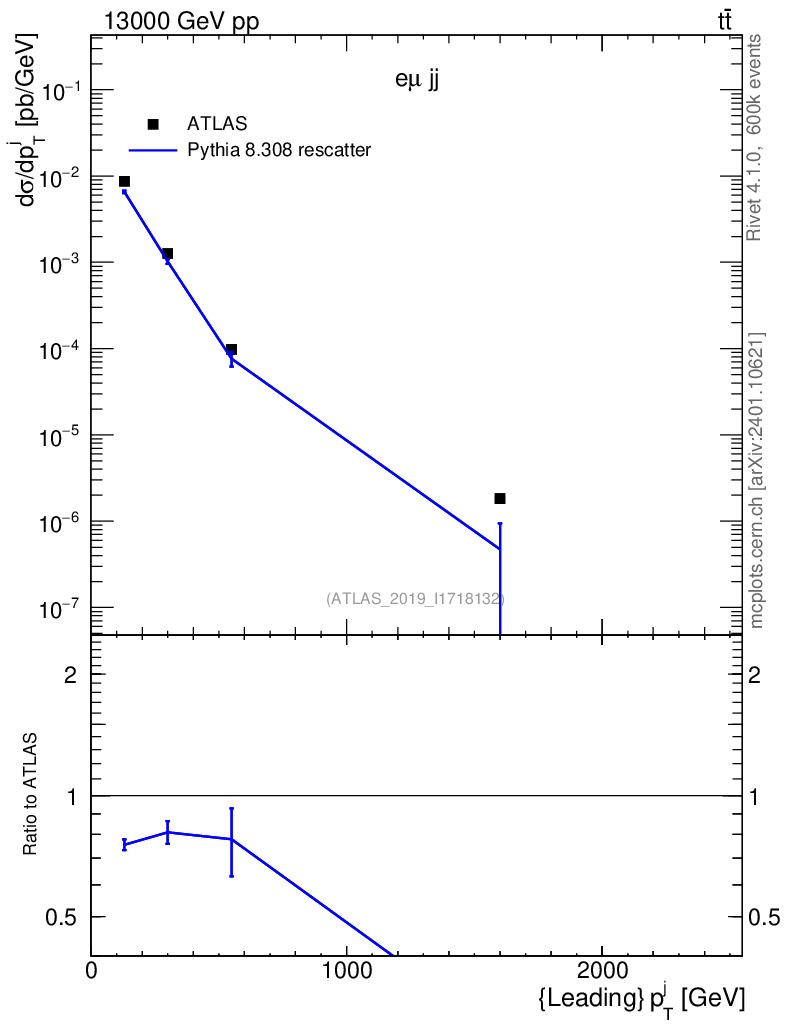 Lines: data, pythia8 8.308 rescatter |