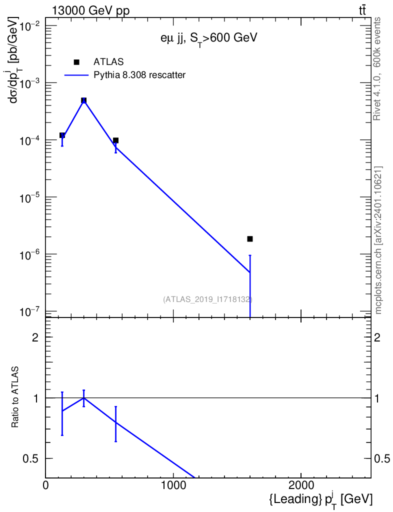Lines: data, pythia8 8.308 rescatter |
