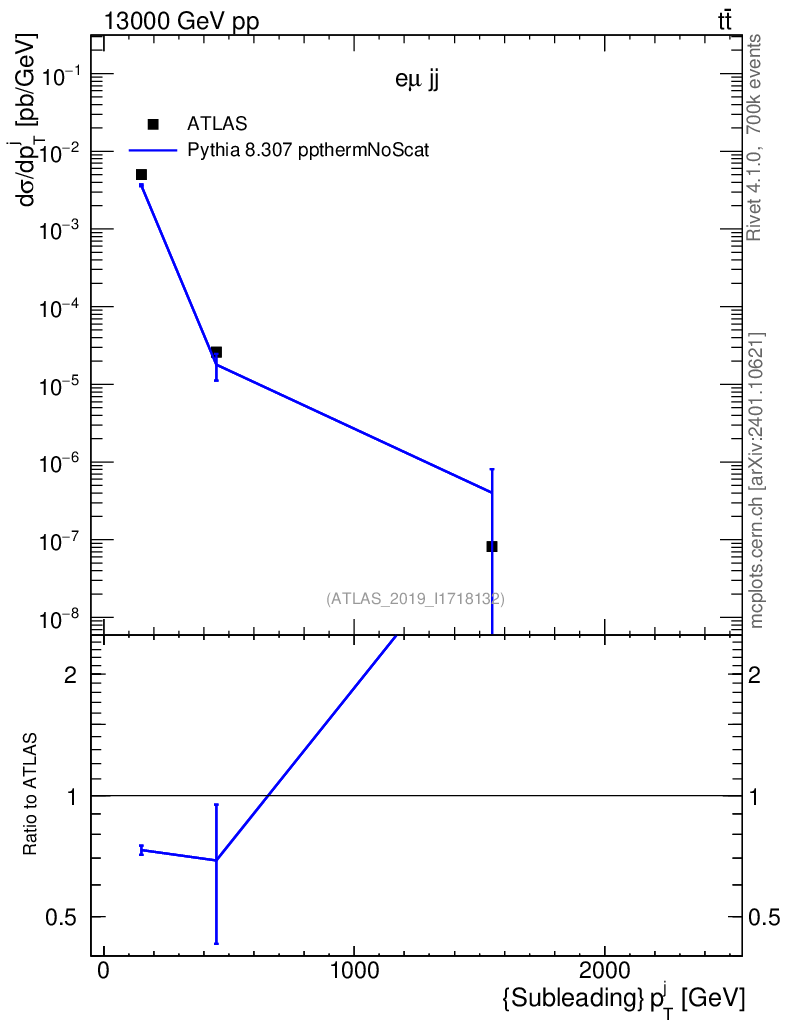 Lines: data, pythia8 8.307 ppthermNoScat |