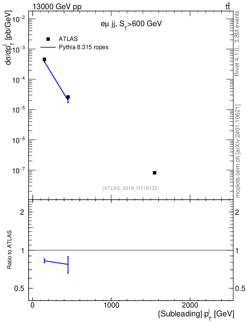 Lines: data, pythia8 8.315 ropes |