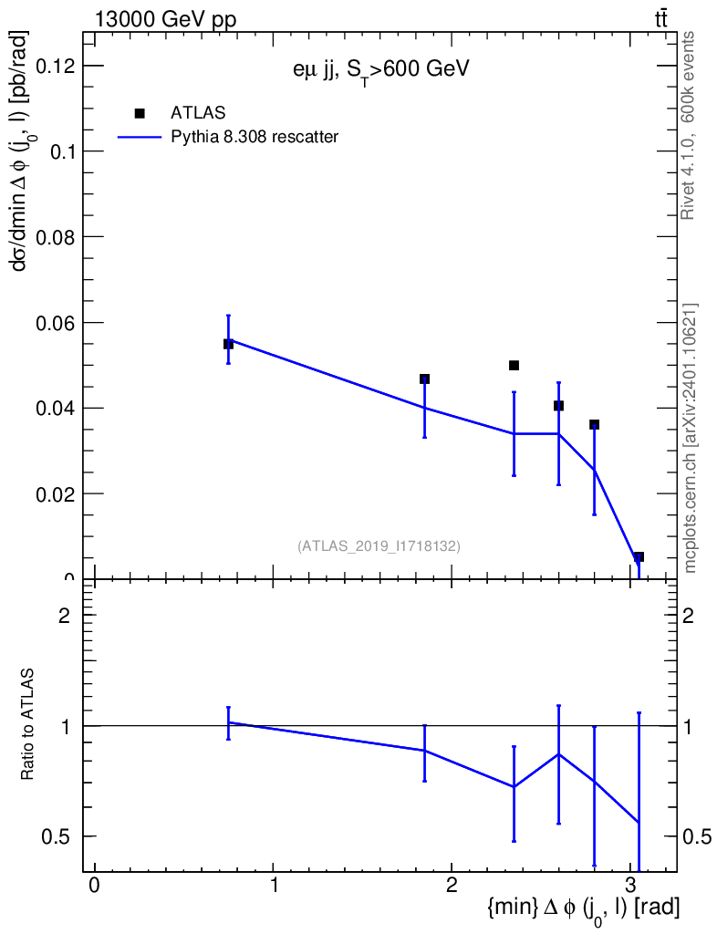Lines: data, pythia8 8.308 rescatter |