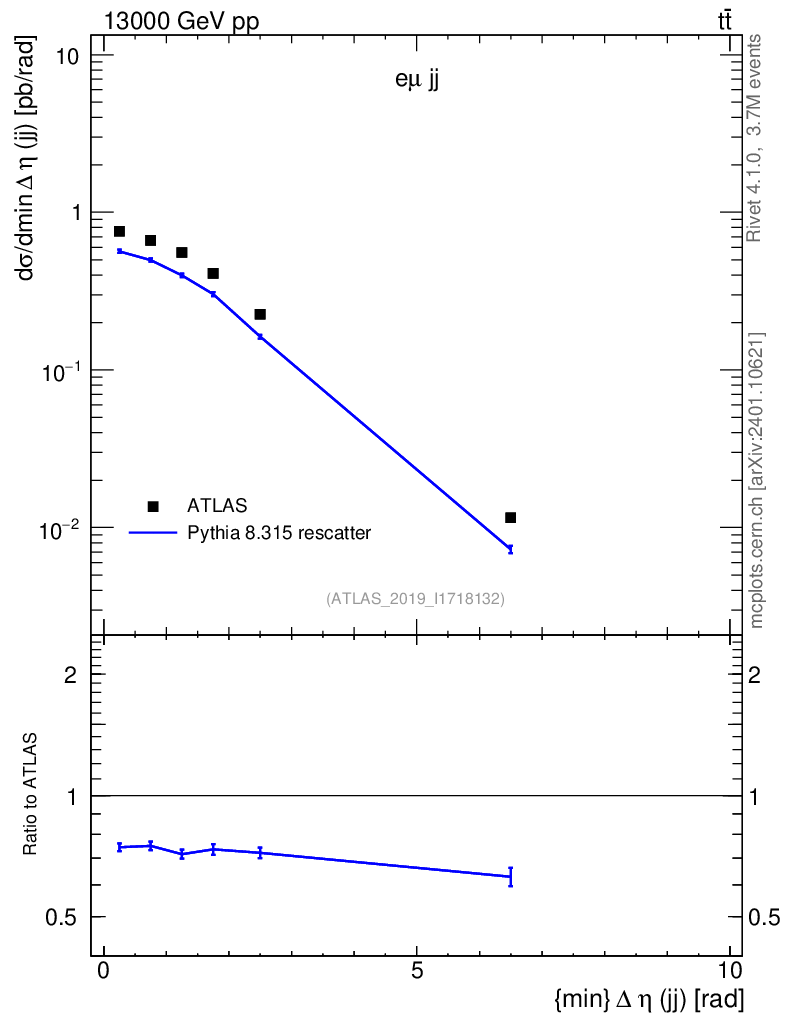 Lines: data, pythia8 8.315 rescatter |