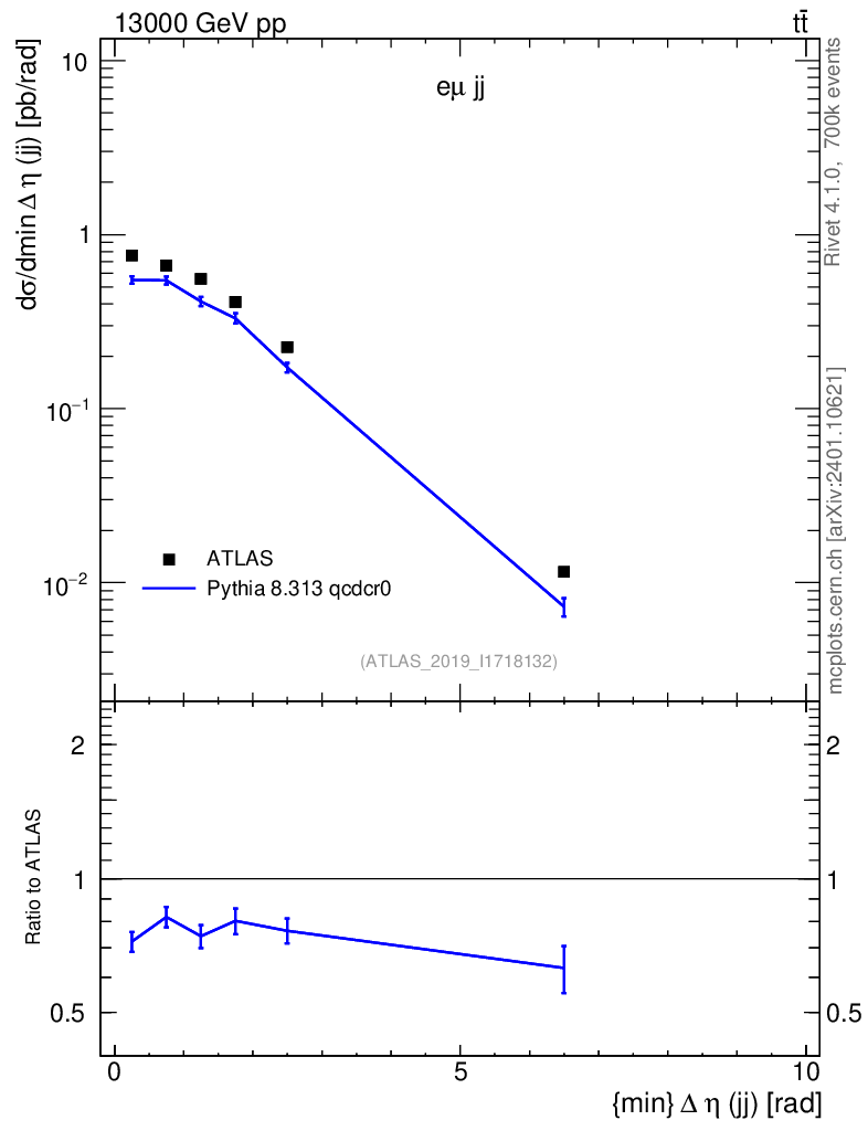 Lines: data, pythia8 8.313 qcdcr0 |