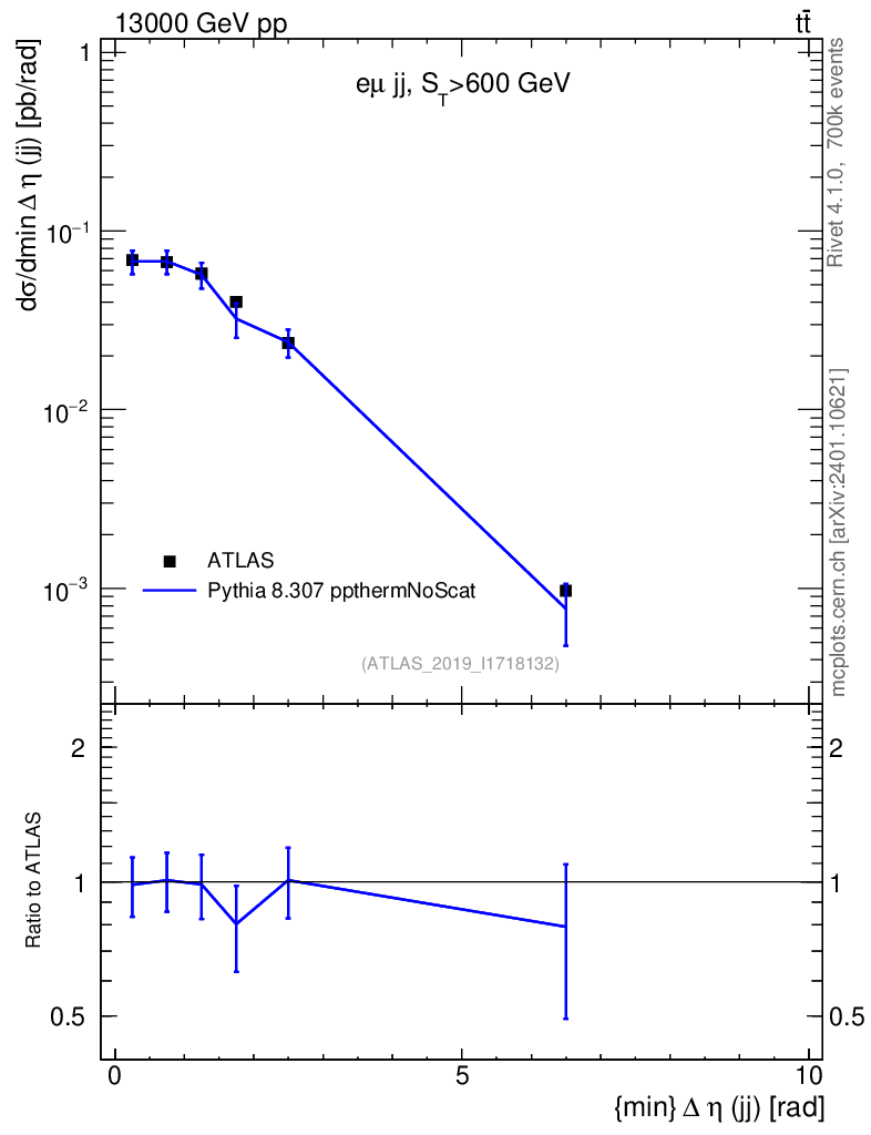 Lines: data, pythia8 8.307 ppthermNoScat |