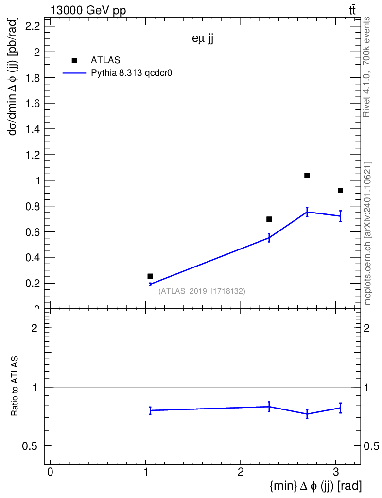 Lines: data, pythia8 8.313 qcdcr0 |