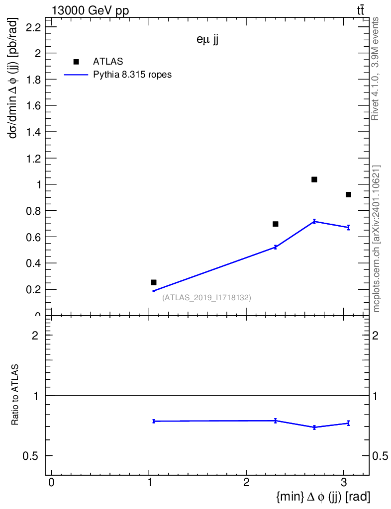 Lines: data, pythia8 8.315 ropes |
