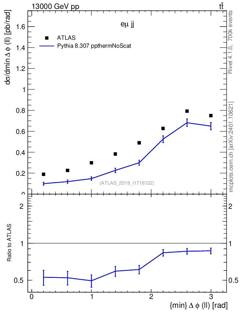 Lines: data, pythia8 8.307 ppthermNoScat |