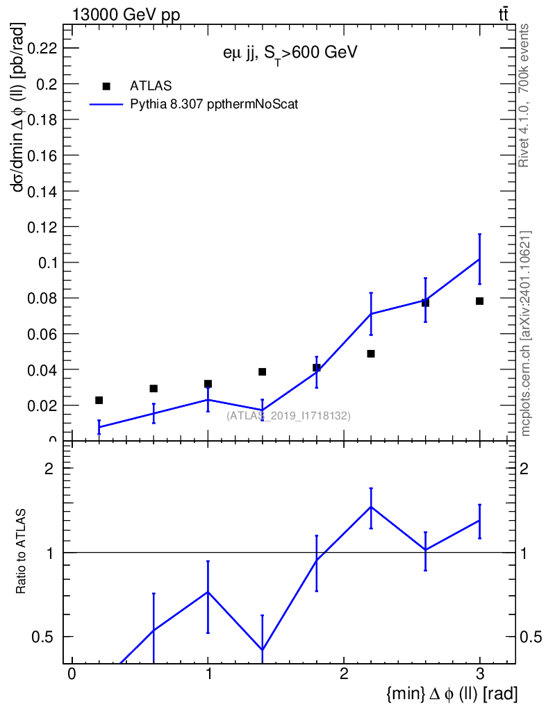 Lines: data, pythia8 8.307 ppthermNoScat |