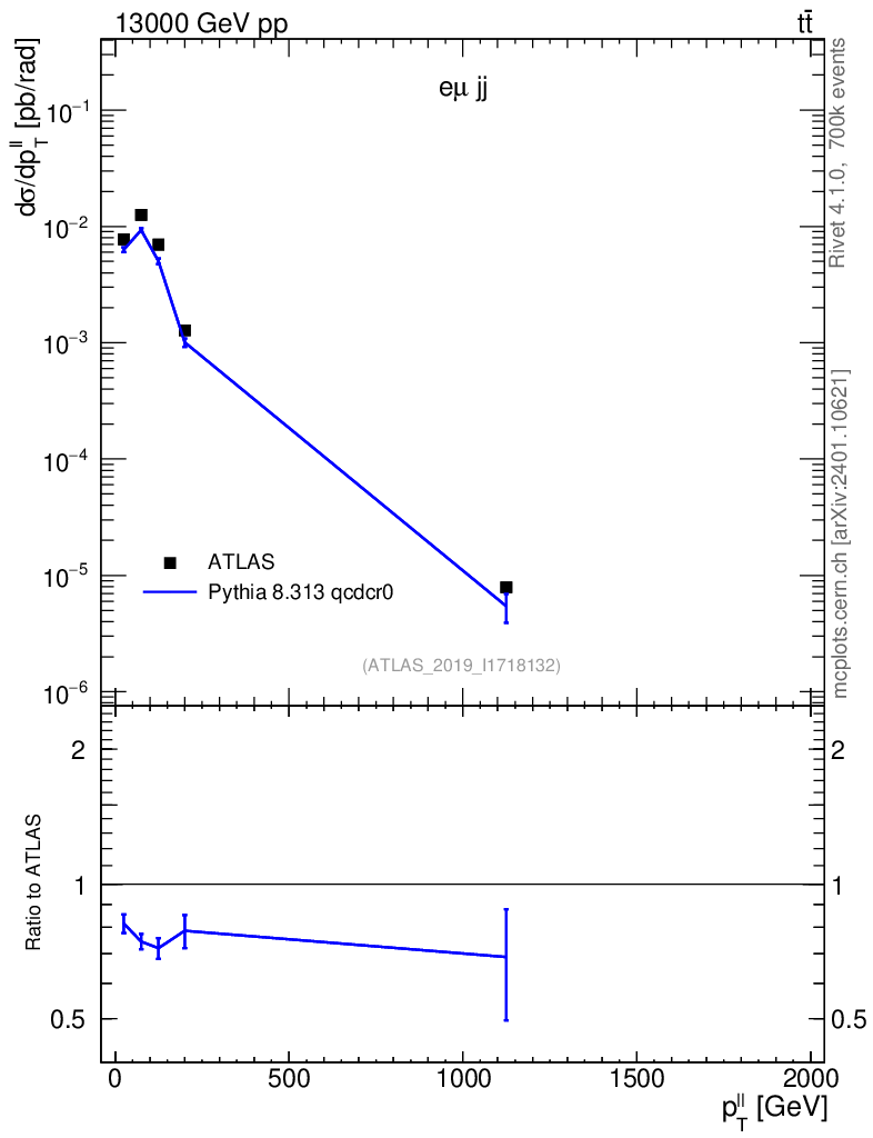 Lines: data, pythia8 8.313 qcdcr0 |