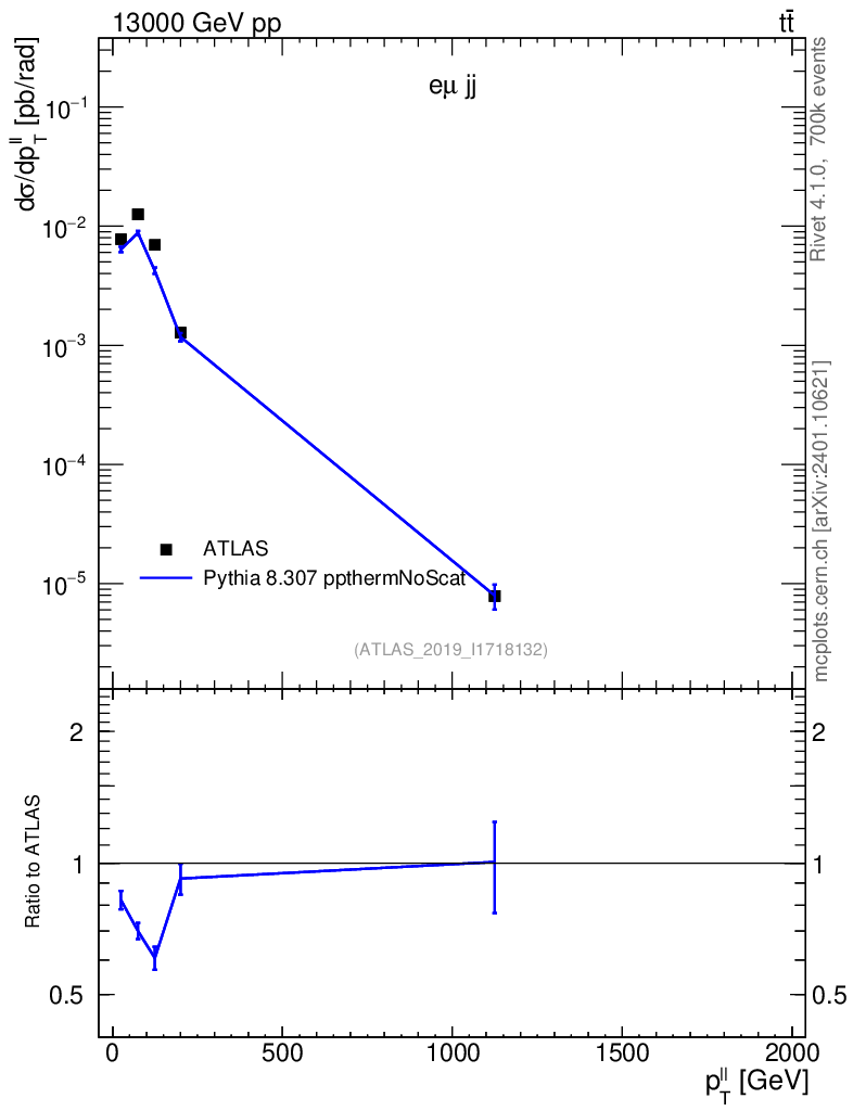 Lines: data, pythia8 8.307 ppthermNoScat |