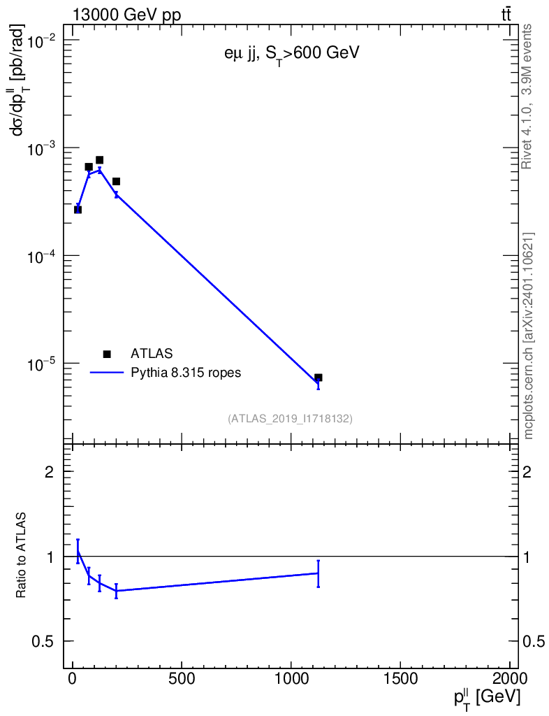 Lines: data, pythia8 8.315 ropes |