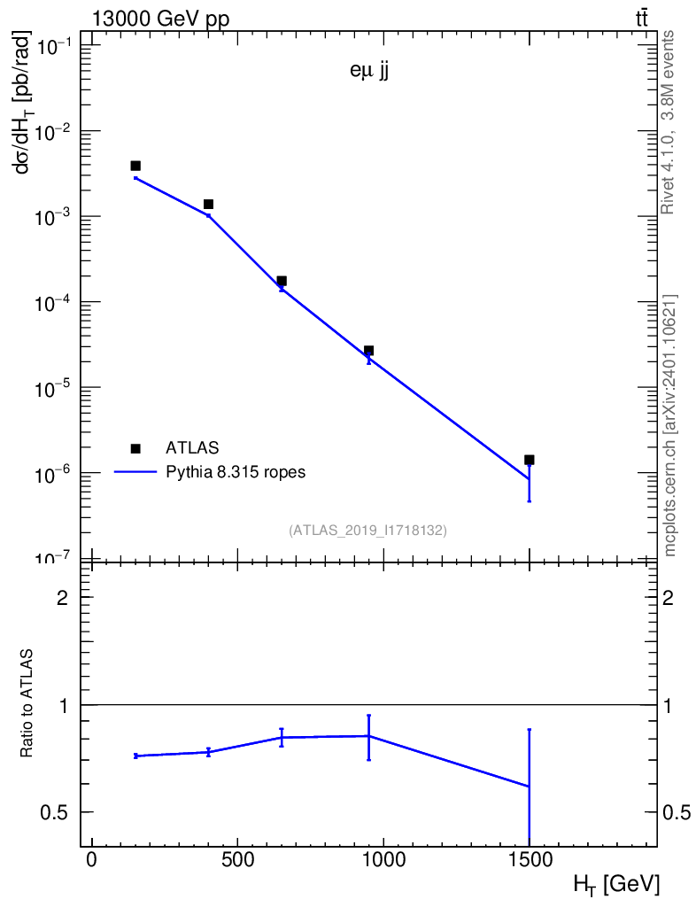 Lines: data, pythia8 8.315 ropes |