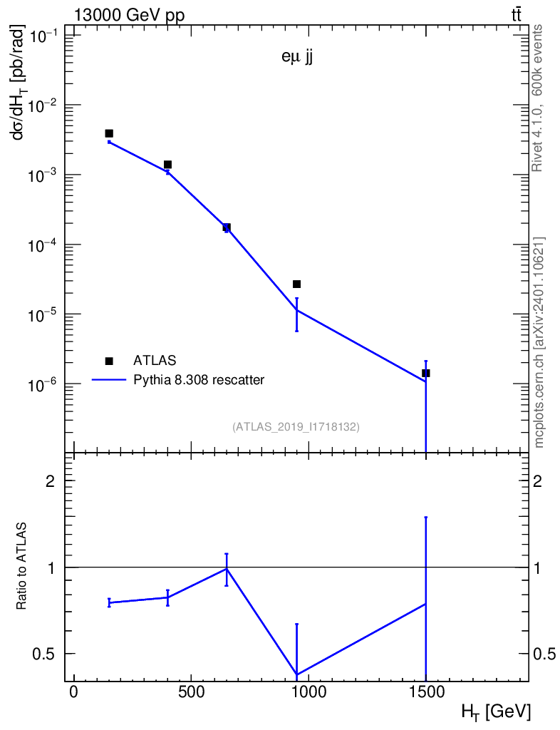 Lines: data, pythia8 8.308 rescatter |