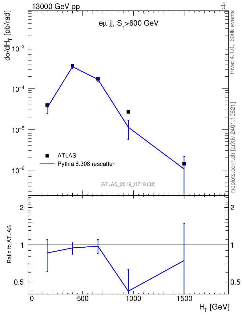 Lines: data, pythia8 8.308 rescatter |