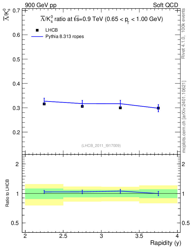 Lines: data, pythia8 8.313 ropes |
