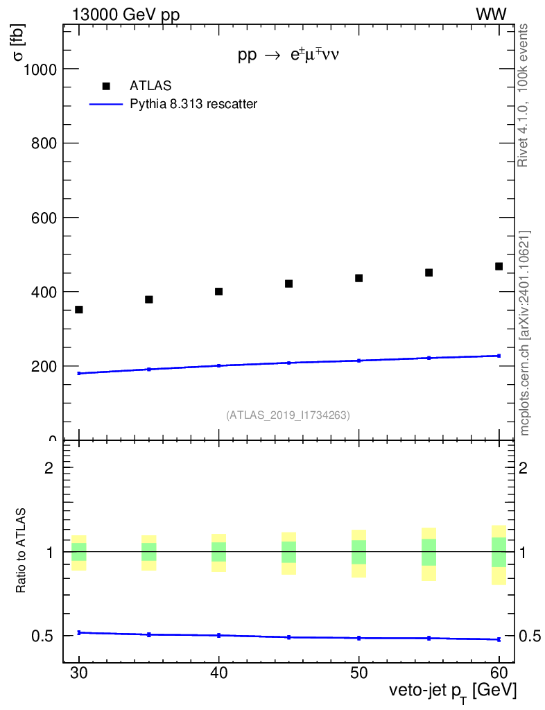 Lines: data, pythia8 8.313 rescatter |